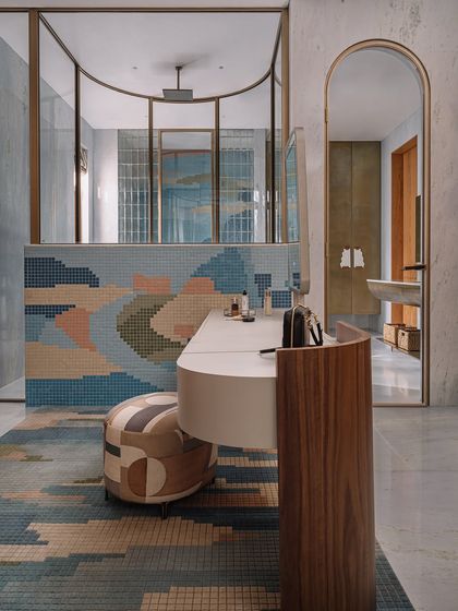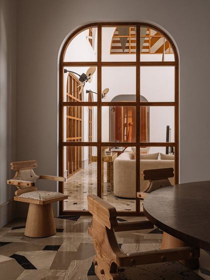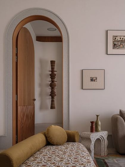 Arches, sculptural staircases, and unique signature elements pop up a lot. We’re big on mixing materials too - warm teak, cool stone, brass, handmade tiles. Interiors get a tactile symphony vibe, with custom-designed furniture and even traditional touches like Oonjal (swing) or Kolam art.
