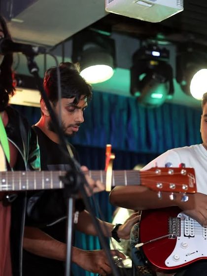 We teach guitar, piano, vocals, and drums to all ages with a focus on playing real songs, music theory, live performance, and exam prep for Trinity, covering both Indian and Western styles.