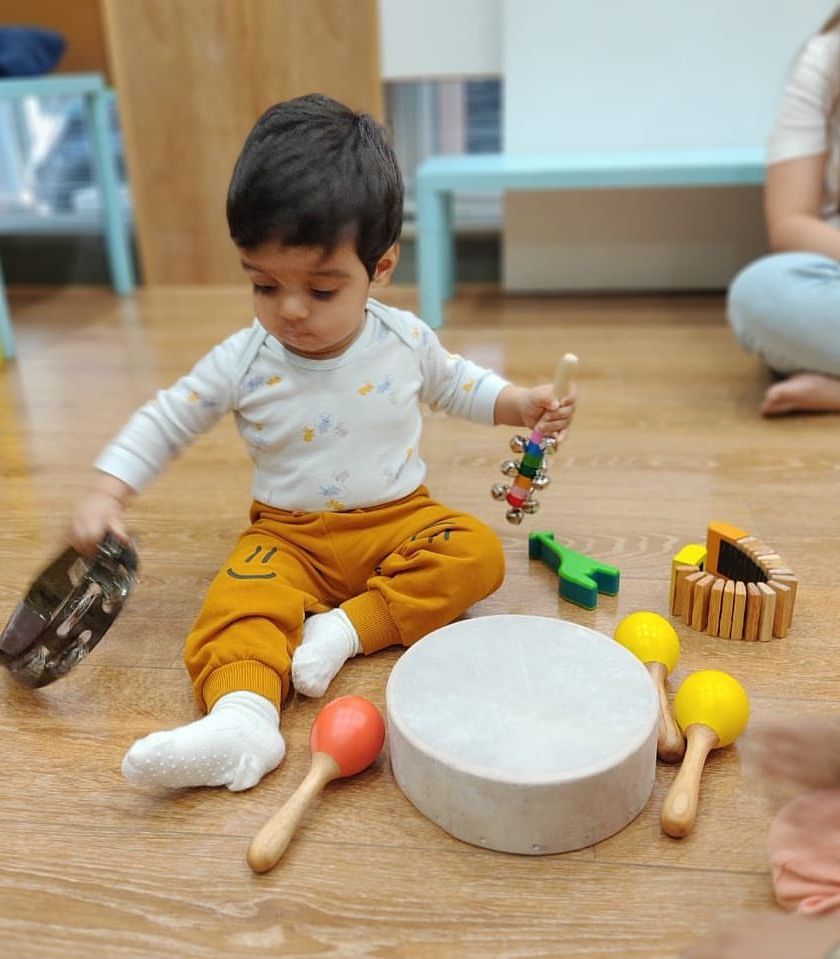 This is the heart of the party where children get to explore a box full of sanitized instruments. From drums and xylophones to maracas and rhythm sticks, they have the freedom to play, discover sounds, and express themselves however they wish.
