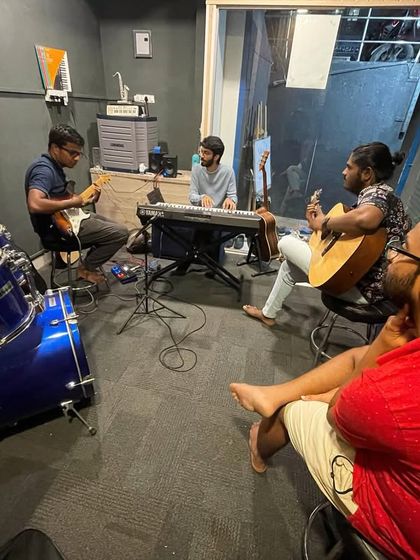 We teach guitar, keyboard, drums, violin, flute, ukulele, and vocals in one-on-one or group classes, online or in Bangalore, with a focus on performance, music theory, and community events like open mics and jam sessions.