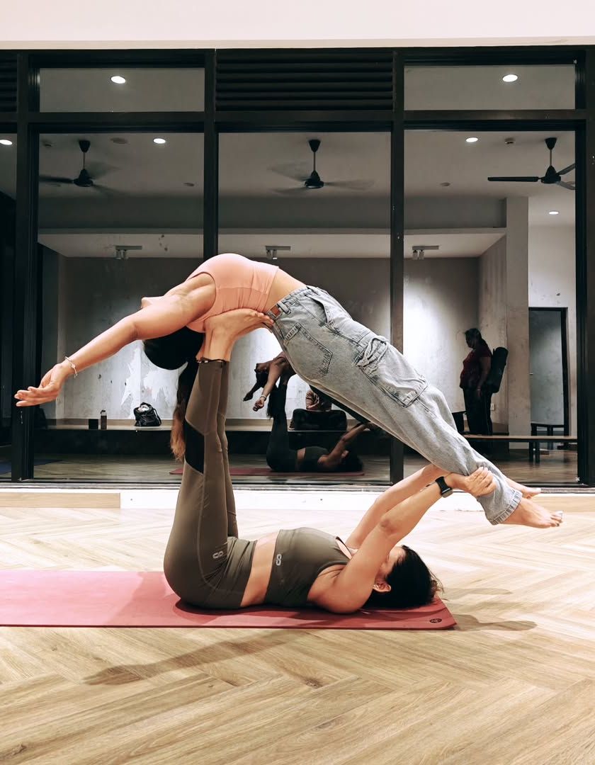 Acro Yoga blends the wisdom of yoga, the dynamic power of acrobatics, and the kindness of healing arts. It’s a partner practice where we learn to be both the 'base' and the 'flyer', building strength, trust, and communication. As I always say, "Sab teamwork ka khel hai!"