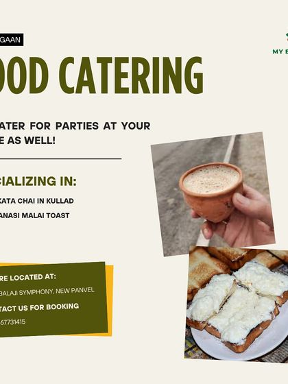 We offer home-style vegetarian catering with our own relaxed green setup, serving chai, malai toast, and snacks for cozy gatherings or larger events in Navi Mumbai.