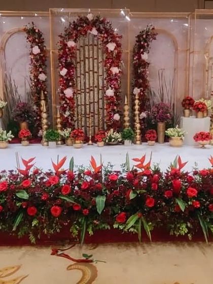 Weddings & Traditional Events - Floral wedding backdrops, mandaps, fabric draping, stage setups for haldi, mehendi, receptions.