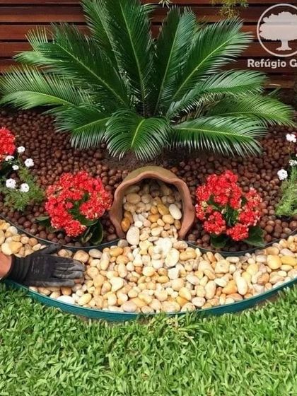 - Polished white or river pebbles (1 to 2 inch size) to fill gaps and borders.