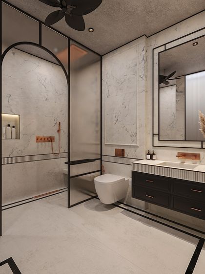 We believe that even the most private rooms deserve thoughtful design. This collection showcases our custom bathrooms, where we carry the home's aesthetic through with elegant details, and our serene mandirs, crafted as spiritual sanctuaries within the home.
