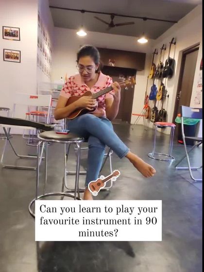 Learn your first song on the uke in just 90 minutes. I provide the instruments for our fast-track workshops, which include fun themes like "A Date with Coldplay" or "Sharukh Strums" for a unique learning experience.