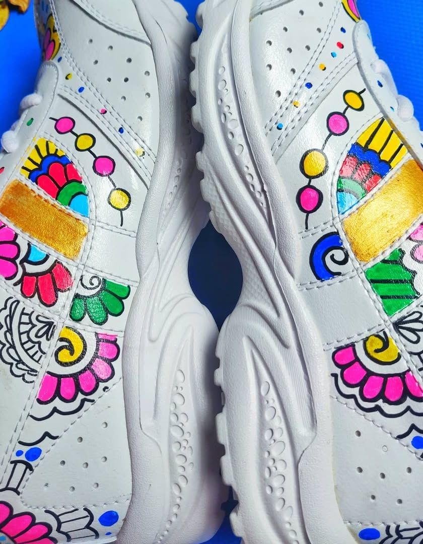 I transform everyday items like sneakers into one-of-a-kind wearable art. Each design is a collaboration, featuring vibrant mandalas, florals, and patterns personalized just for you.