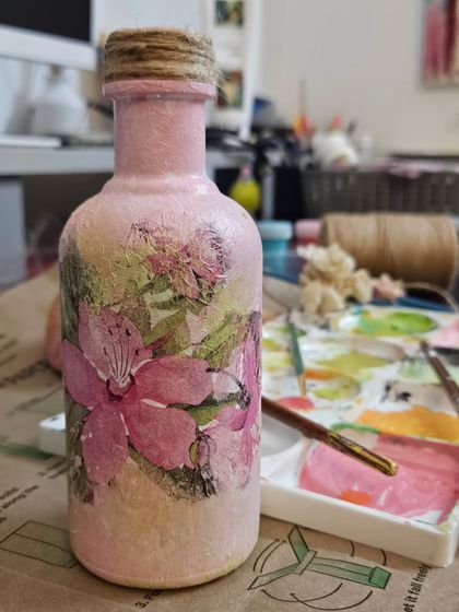 I give new life to everyday objects like bottles by transforming them with decoupage techniques. Using pressed flowers, unique papers, and finishing touches, I can turn your favorite item into a beautiful piece of decor.