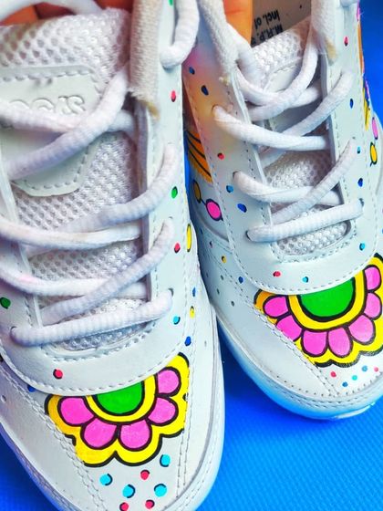 I transform plain sneakers into unique art pieces through hand-painted designs. My work features intricate floral motifs, abstract patterns, and personalized elements that make each pair special.