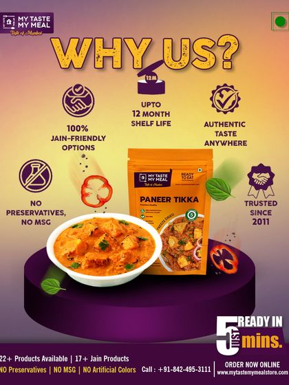 Ready-to-Eat Meals - Over 30 dishes, 17+ Jain, Vegan, and ready-to-eat baby food without chillies. No preservatives, just add hot water.