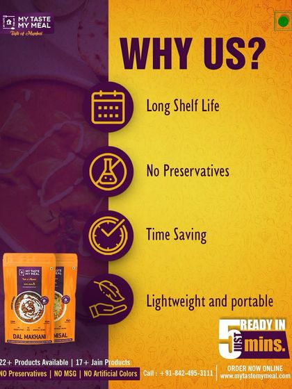 I am committed to providing food that is not only convenient but also healthy and natural. This cluster highlights the key benefits of my products, from their long shelf life and lightweight nature to the fresh ingredients I use.