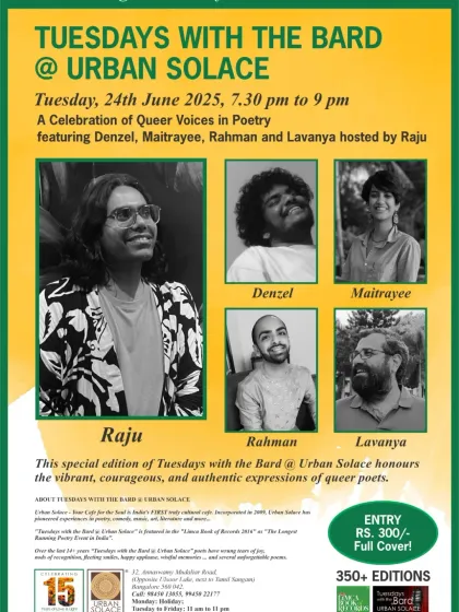 Tuesdays with the Bard - India’s record-breaking weekly poetry event. Poets, applause, tears, and first-time voices—everyone’s welcome.