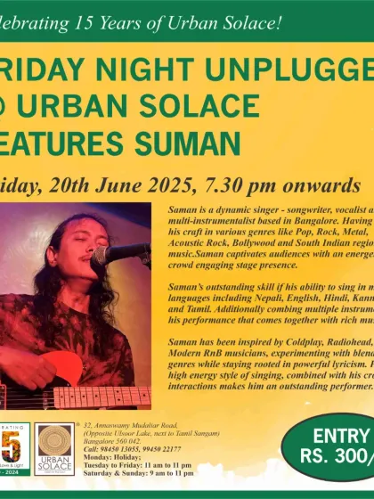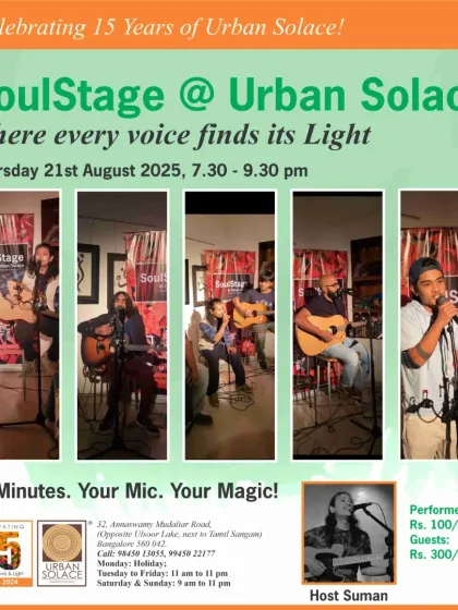 15 years back, Urban Solace was just a wild dream—now, it’s kinda like a second home for so many. We built this spot in Bangalore for artists, poets, comedians, thinkers, bookworms—basically, anyone who needs a place to be real. Our Tuesdays with the Bard poetry thing, it’s legendary, but honestly? The best bits are the nervous poets, the crazy laughter, the quiet book chats. This place has a soul ‘cause of you all. Welcome home, yaara.