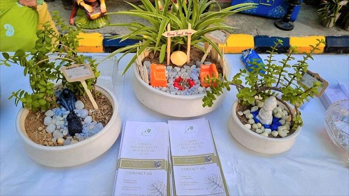 I design miniature worlds for your desk. These self-contained gardens, featuring succulents, pebbles, and zen-inspired idols like Buddha or Ganesha, are perfect for bringing a moment of calm to a busy workday.