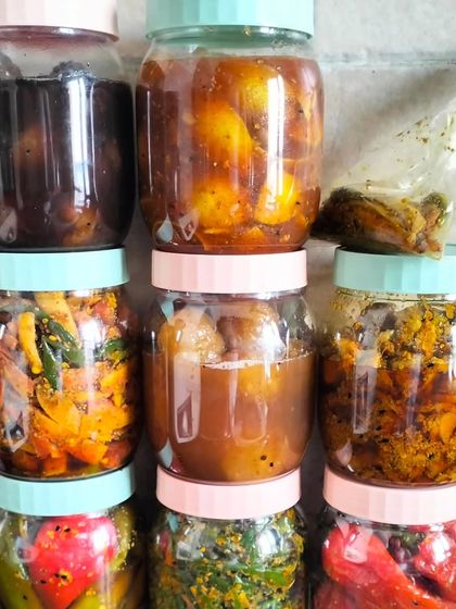 We make traditional homemade pickles from my grandmother's recipes, completely free of preservatives or vinegar. We never compromise on quality, using only pure mustard oil and organic spices for an authentic taste.