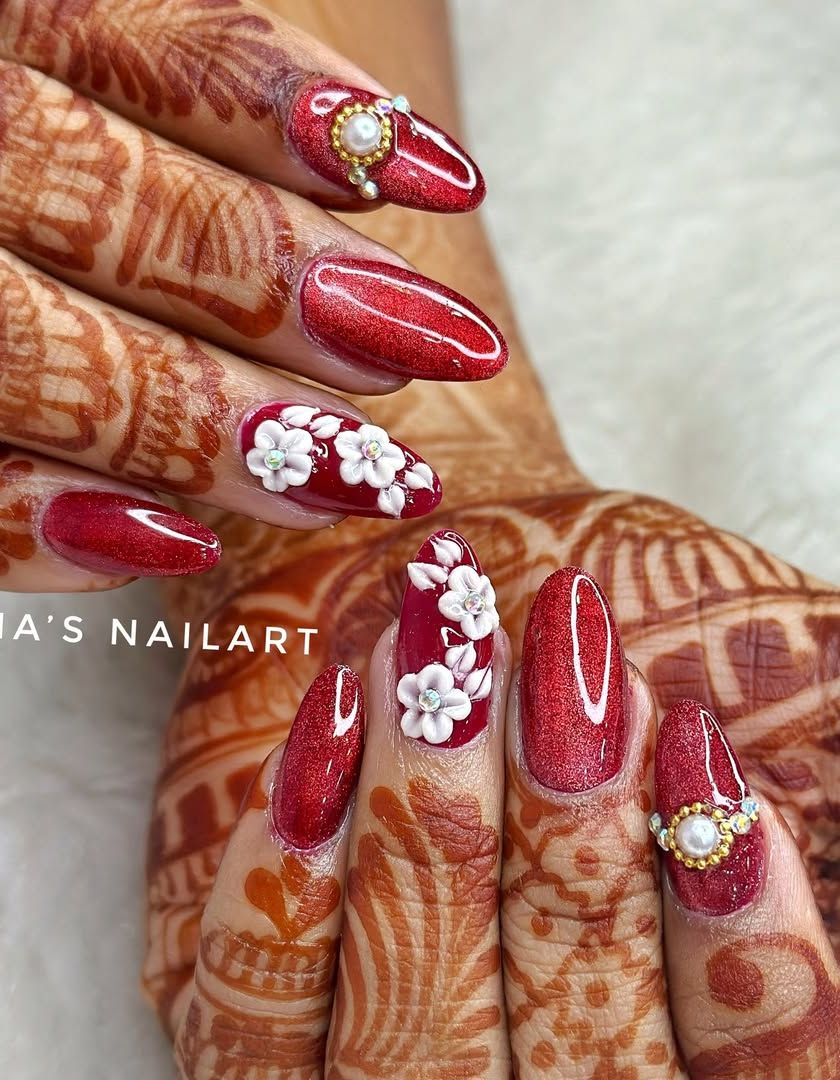 Your wedding nails should be as unforgettable as the day itself. I specialize in creating custom bridal sets, from timeless French ombres and baby boomers to elaborate designs with 3D flowers, Swarovski crystals, and gold details that perfectly match your outfits and henna.