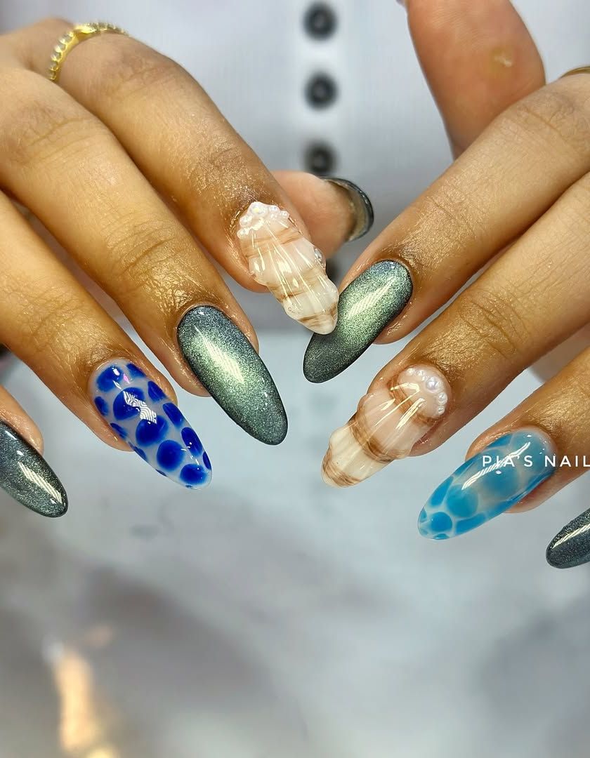 If you love nails that shine and shift in the light, this is for you. I offer a huge range of special effects, including super popular chrome finishes in gold, silver, and aurora, plus mesmerizing cat eye and holographic glitters.