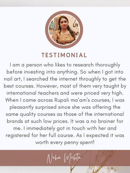Simple, Patient Teaching Style - I break down tough nail art concepts in easy words. I answer every doubt, no rush, all hands-on.