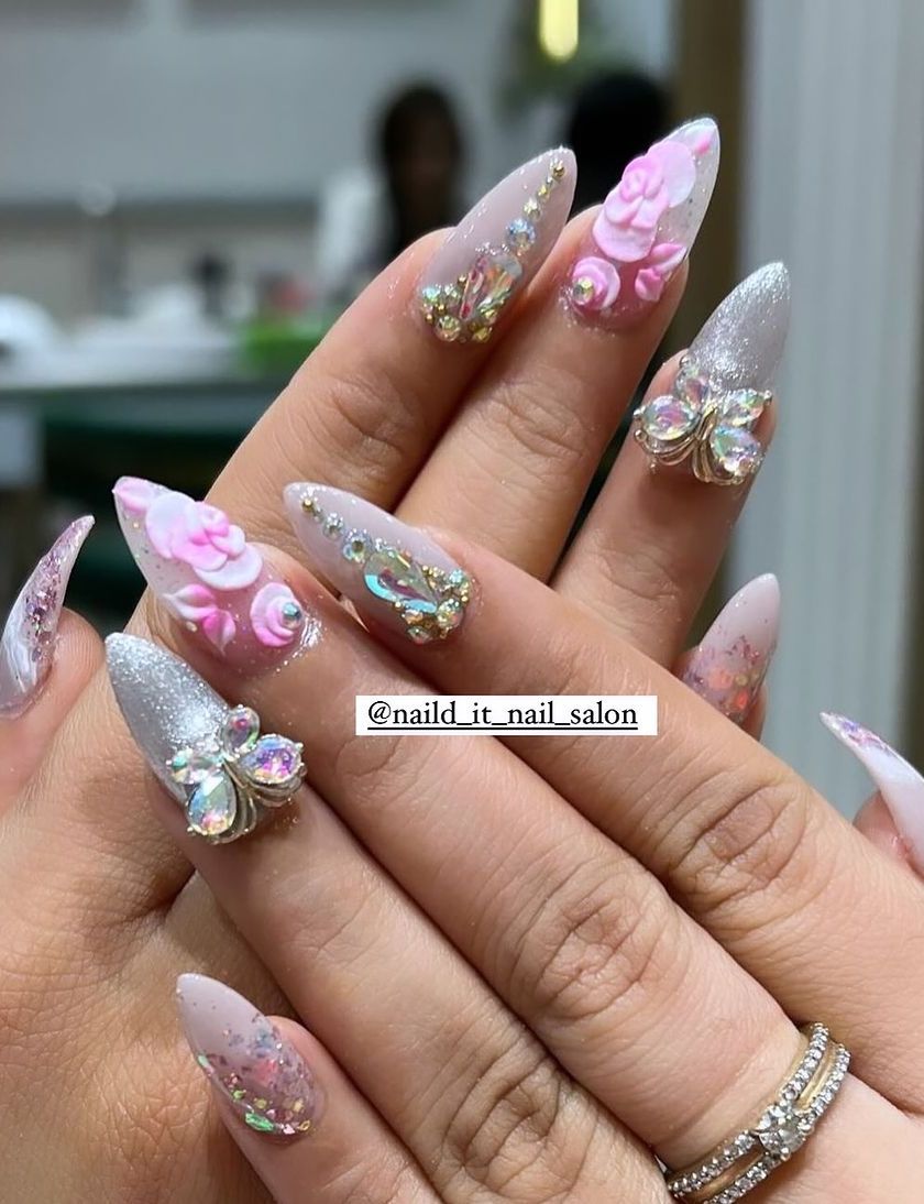 We love adding extra drama to your nails with our 3D art and embellishments. Using high-quality acrylics, we sculpt everything from delicate flowers and bows to bold, abstract shapes, often finished with Swarovski crystals, pearls, or metallic studs for a truly dimensional look.