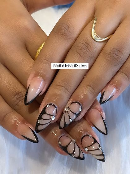 We specialize in premium nail extensions using acrylic and gel techniques. Our extensions can be customized with various shapes, lengths, and designs including 3D embellishments like rhinestones, bows, and floral patterns.