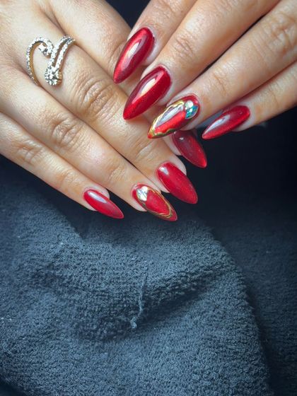 You can never go wrong with a classic red. This collection showcases my work with all shades of red, from bright cherry to deep wine and burgundy. I can do a simple, glossy color or add effects like cat-eye, chrome, marble, and custom art.