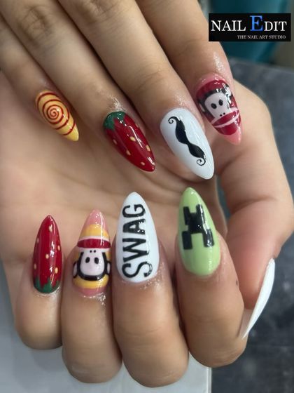 I make nails that actually turn heads. Every nail’s like a mini canvas to me - some days it's simple, some days it’s wild. If you’re after anime nail art, or want your favorite cartoon on your nails, I’ve got you. I’m also all about those seasonal looks, like Diwali sparkle or Christmas vibes, and yes, evil eye or checkerboard patterns are totally doable.