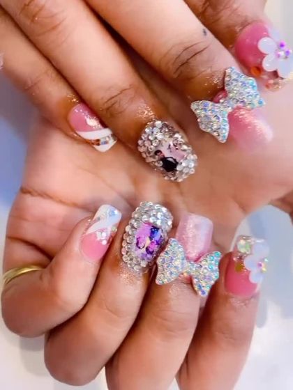 Take your nail art to the next dimension with my 3D designs and embellishments. I love adding texture and detail using handcrafted acrylic flowers, delicate bows, pearls, and sparkling stones. These elements can be added to any design to make your nails truly pop.