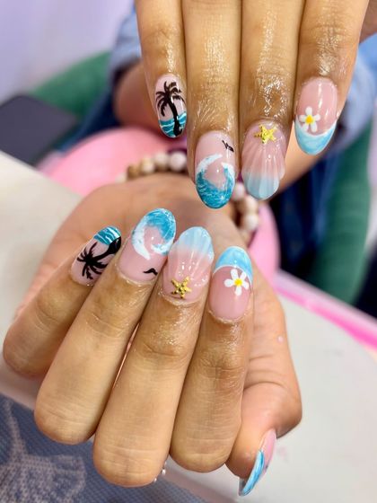 Get your nails ready for paradise. This collection is inspired by sunny days, sandy beaches, and tropical getaways. Featuring hand-painted palm trees, ocean waves, vibrant sunsets, and 3D sea creatures, these sets are the perfect accessory for your next vacation.