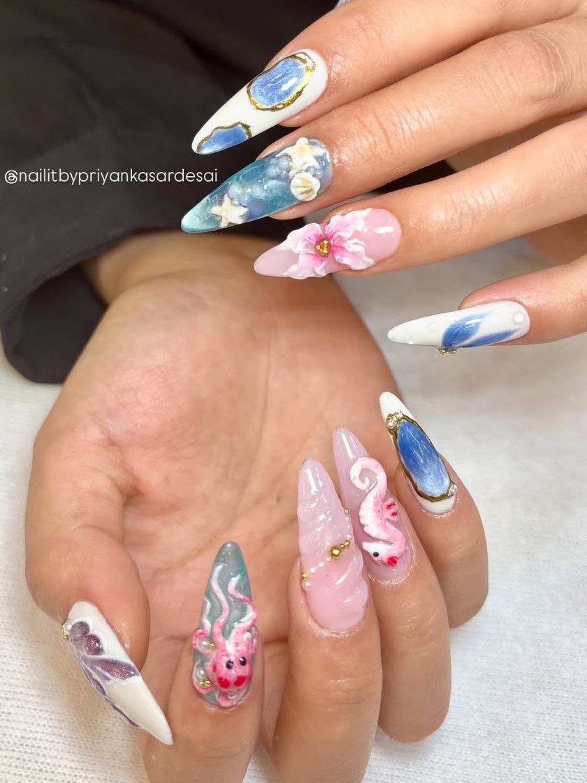 This is where I turn your nails into miniature sculptures. Using specialized 4D gels and acrylics, I handcraft every element, from lifelike flowers and slithering snakes to whimsical ocean creatures. This is more than nail art; it's a wearable masterpiece that adds texture, dimension, and a serious wow-factor to your look.