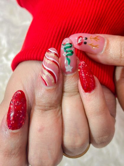Get into the spirit with special nail art for any celebration. I create custom designs for holidays like Christmas and Diwali, or for special events like Karwa Chauth.