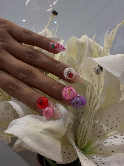 We’re big on making your nail inspo come to life - show us a photo or even just a vibe you’re feeling. Detailed, intricate nail art designs are our jam, from tiny florals and fruits to bold chrome and ombré. If you’re the type who loves a little extra, we do 3D nail embellishments like pearls, rhinestones, or gold foil.