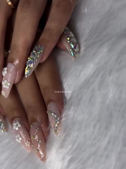 - 3D Sculpting: Hand-sculpted acrylic flowers and petals sitting on the nail surface.