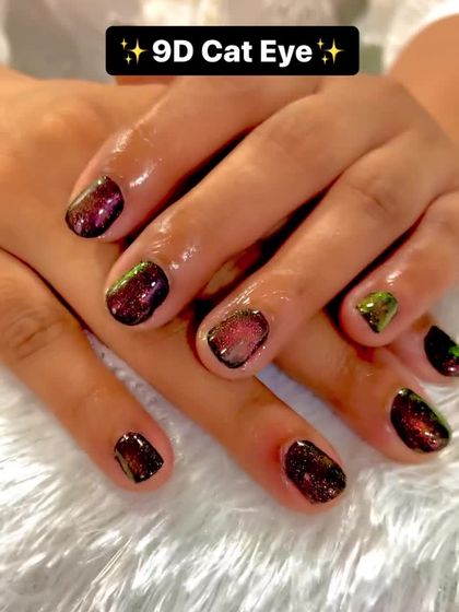 Here is a broader look at the variety of styles and designs my clients love. This gallery showcases everything from bold, solid colors and cat-eye effects to unique color combinations and artistic finishes on different nail shapes and lengths.