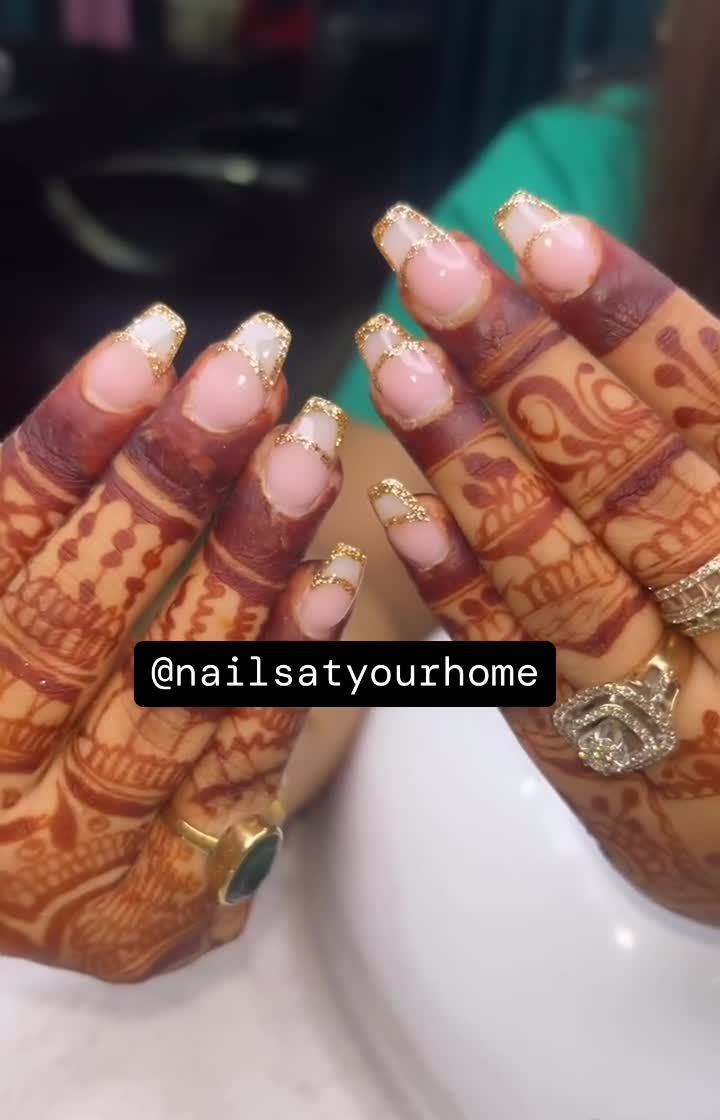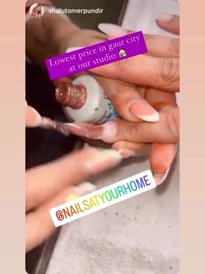 To complete your look, I offer professional nail services including gel polish and extensions, available both at my studio in Gaur City and at your home. I can create a variety of designs, from elegant French tips with glitter to bold, modern styles that complement your outfit and occasion.