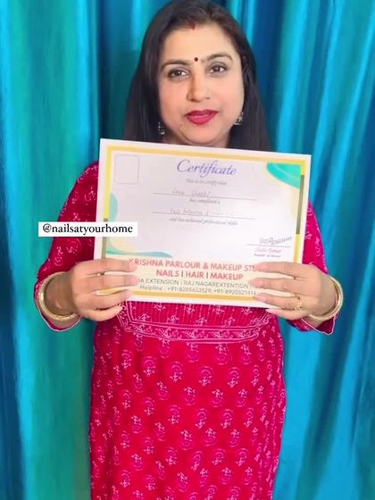Namaste, hum hain Shalu Tomer Pundir, Nails At Your Home ki founder. Log mujhe Shalu mam kehte hain, main nails, makeup, eyelashes sab karti hoon aur sikhati bhi hoon. Teaching mera dil hai, jab students apna kaam khud karne lagte hain, wah! Main har kaam dil se karti hoon, chaahe client ho ya student. Roz subah pooja se shuru hoti hai meri din. Jai Shree Radhe.