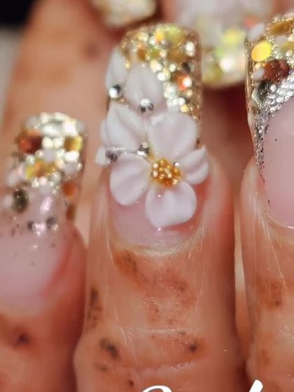 Add dimension and drama to your nails with 3D art and unique textures. I use high-quality rhinestones, traditional Kundan pieces, sculpted acrylic flowers, and even nail piercings to create a truly standout, tactile design.