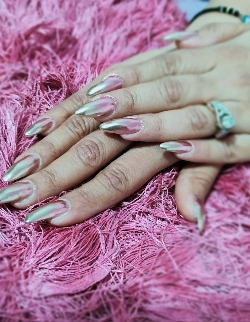 Explore my range of sparkling finishes, from subtle pearly sheens and trendy chrome effects to full-coverage glitter and delicate foil accents. I use professional-grade gel polish to ensure a chip-free, brilliant shine.