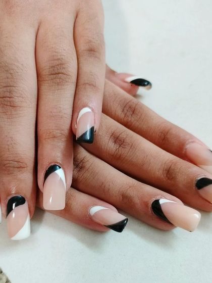 See my modern takes on the classic French manicure, available for your at-home appointment. I do everything from colorful and geometric tips to glitter lines and embedded art, all on durable gel extensions.