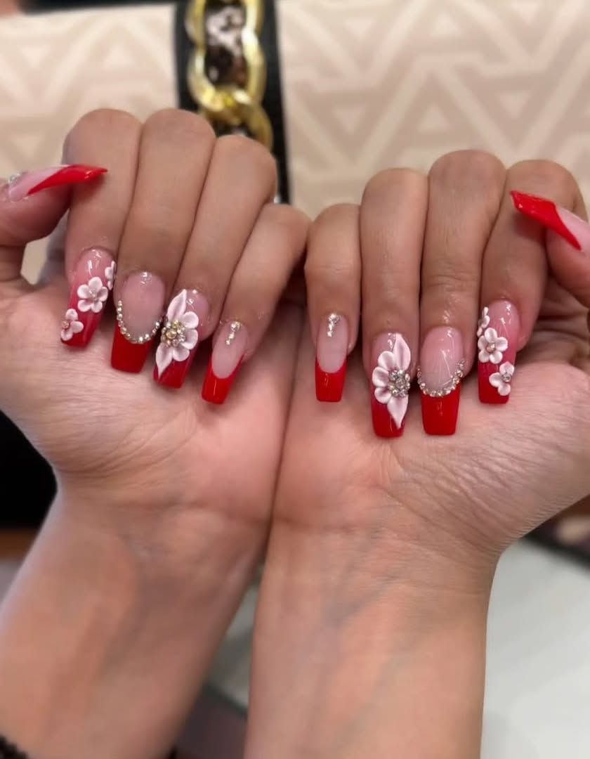 I add dimension and sparkle to your nails with high-quality rhinestones, delicate pearls, and unique 3D charms like bows or flowers. These elements are securely applied to your gel manicure or extensions for a lasting, standout look.