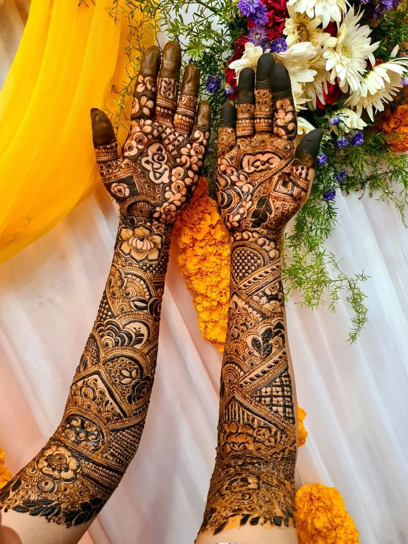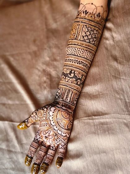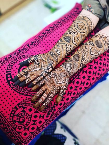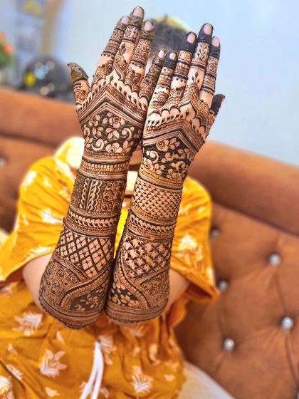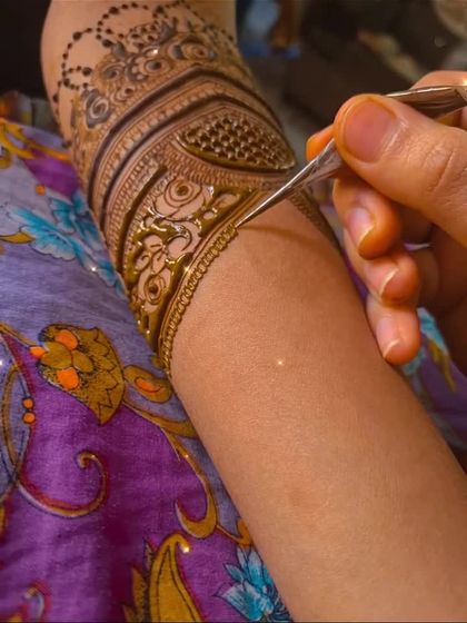 My greatest passion is creating unforgettable bridal mehndi. I specialize in full-coverage, intricate designs that extend from the fingertips to the elbows, using a blend of traditional and contemporary patterns to tell your unique story. Each design is a work of heart, made to make you feel cherished on your wedding day.
