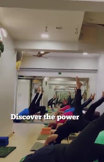 We blend traditional yoga with modern fitness tools like dumbbells, resistance bands, gym balls, and yoga wheels. These sessions are designed for a full body workout that builds strength, tones muscles, and improves stability, going beyond just stretching.