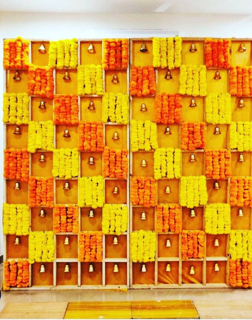 I design and create a wide variety of decorative backdrops suitable for any festive occasion, puja, or family function. Choose from popular designs like marigold checkerboard walls, eco-friendly banana leaf panels, or simple, elegant drapery with floral strings.