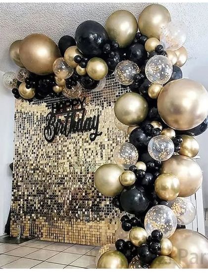 - Balloon arch decoration for birthdays, ring backdrops, shiny sequin walls, custom birthday backdrop setup