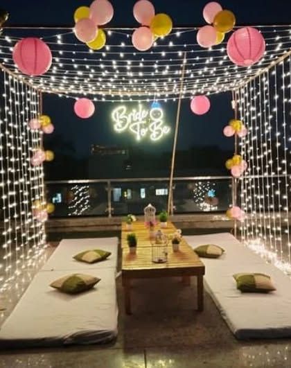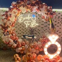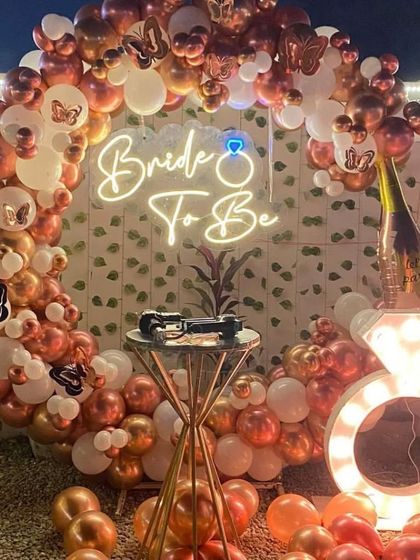 I design trendy setups for 'Bride to Be' parties and bachelorette celebrations. You can choose from popular options like circular balloon arches, custom neon signs, large marquee rings, and even full rooftop cabana setups.