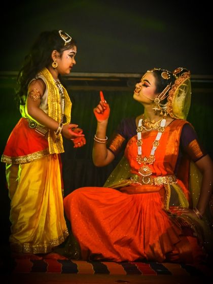 We create and stage full-length Indian classical dance dramas with live music, detailed costumes, and complete production, so audiences experience the story and emotion, not just the dance.
