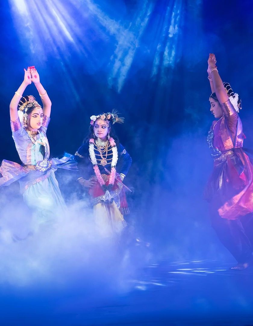 Our most beloved production, "KRISHNA", is a journey through the playful and profound life of the divine cowherd. We explore his joyous leelas, his battles with demons, and his universal message of love through vibrant Bharatanatyam choreography. This production is a visual feast, complete with colorful costumes, a live orchestra, and dramatic lighting, making it a favorite for audiences of all ages.