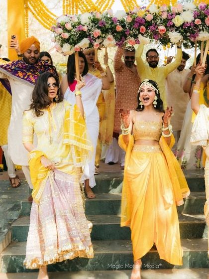 Couples seeking authentic haldi ceremony decor who value both traditional elements and creative presentation for their pre-wedding celebrations.
