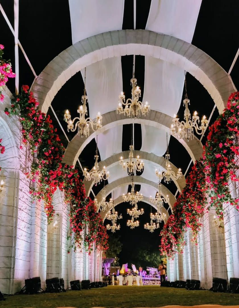 The first impression is everything, and I design entryways and aisles that make a statement. From majestic palace facades and floral tunnels to starlit passages and glass aisles over a bed of roses, I create a dramatic and unforgettable welcome for you and your guests.