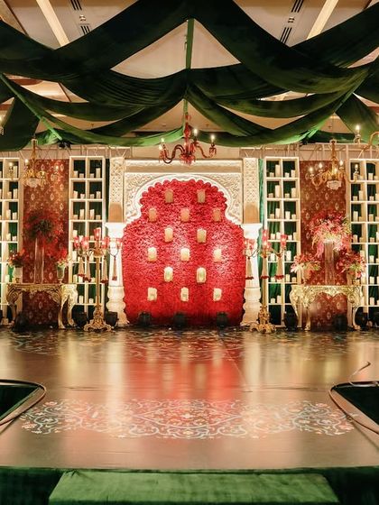 I specialize in creating wedding ceremonies and receptions that feel both regal and deeply personal. My designs feature opulent mandaps, grand entryways, and rich color palettes like crimson and gold, often incorporating traditional motifs, intricate floral work, and dramatic lighting to craft a timeless sanctuary.