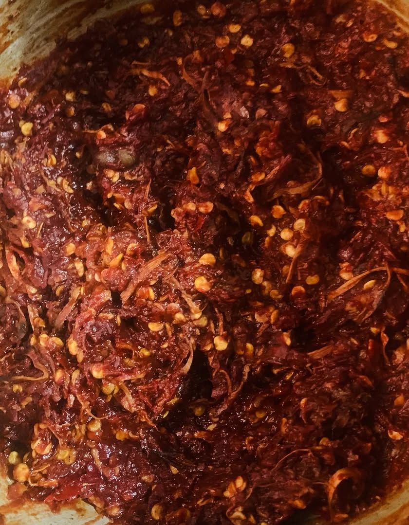 My meat pickles are the heart of my kitchen, made in small batches just like my mother taught me. I offer shredded chicken and beef, along with more traditional preparations like spicy beef liver and pork intestines, all cooked with authentic Naga spices.